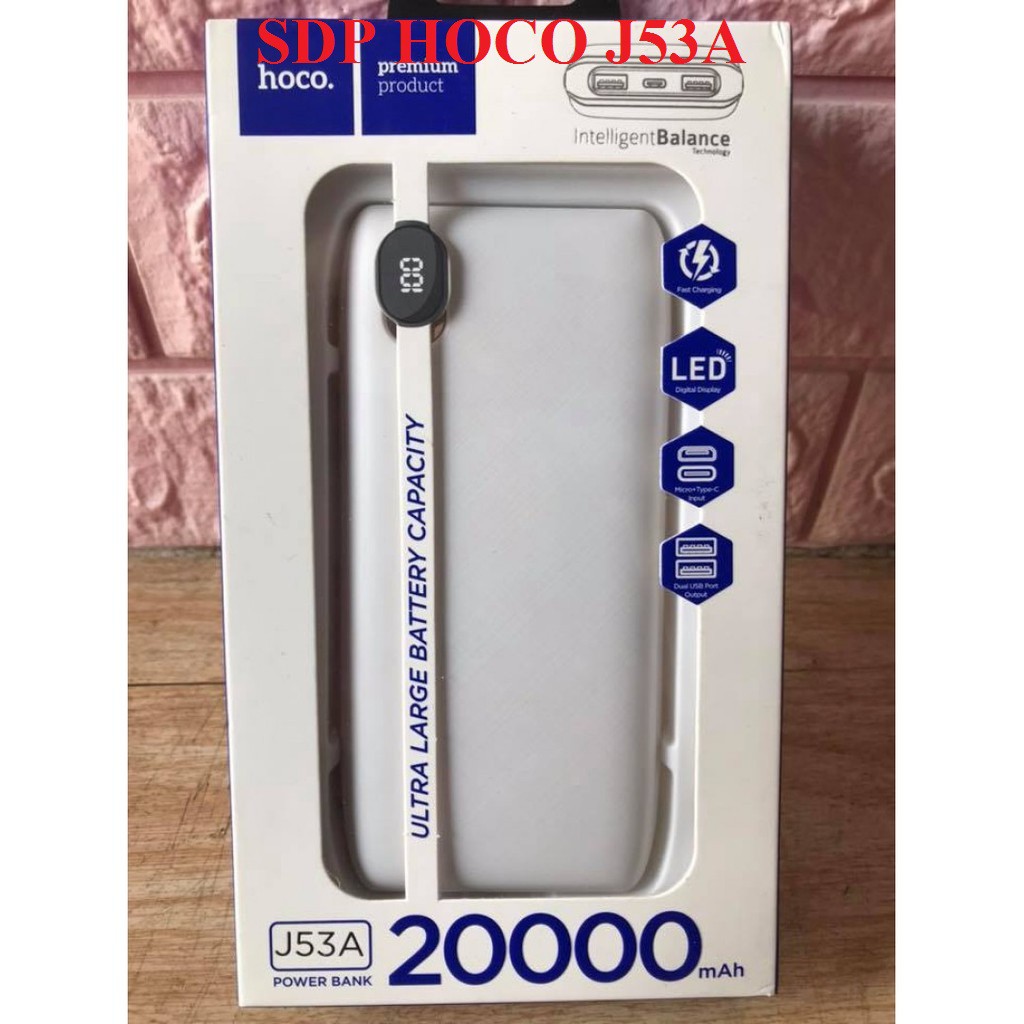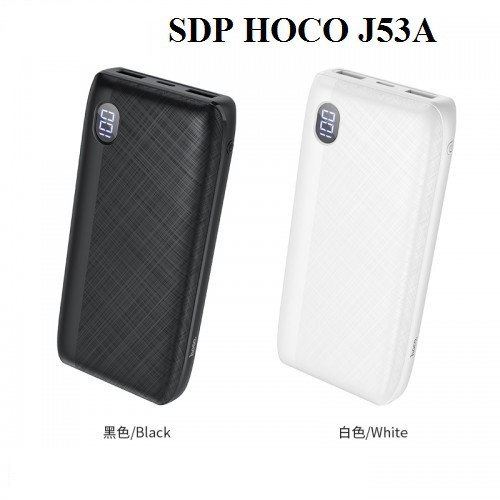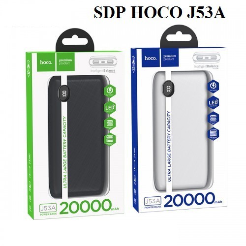 - Pin sạc dự phòng 20000mAh Hoco J53A nhỏ gọn sang trọng với dung lượng lên tới 20.000mAh nhưng thiết kế lại khá nhỏ, gọn, rất thời trang, sang trọng với chất liệu giả da cao cấp bọc ngoài như 1 chiếc ví và cực kỳ an toàn là sự lựa chọn hoàn hảo cho bạn. Với chiếc pin J53A, bạn có thể yên tâm cho những chuyến đi dài ngày tràn đầy năng lượng.