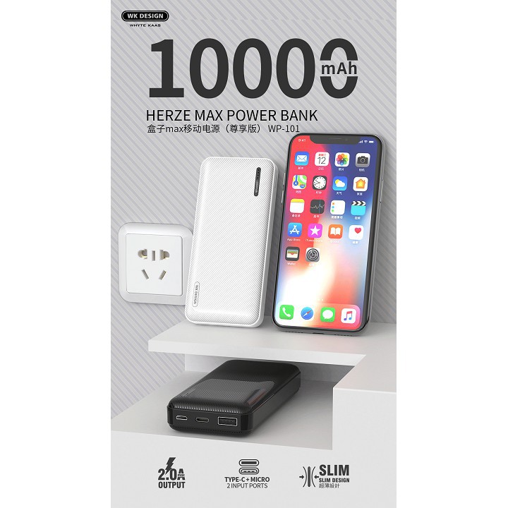 👉 Pin dự phòng WK WP-101 10000mAh có đầu vào kép gồm cổng sạc Micro usb . Người dùng có thể sạc đầy lại năng lượng cho chiếc pin dự phòng mà không cần quá mất công đi tìm 1 chiếc cáp sạc phù hợp.