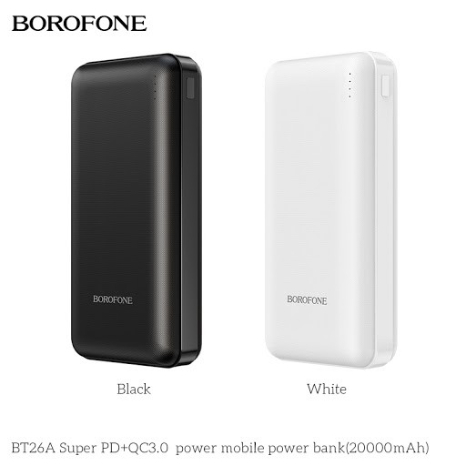 - Pin Sạc Dự Phòng BOROFONE BT27A, 20000mah, Cổng Micro USB / USB-C, 2 cổng USB 2A là một sản phẩm của BOROFONE đến từ Hongkong, đây là thương hiệu chuyên sản xuất các phụ kiện dành cho điện thoại với các mức giá ở tầm trung nên được rất nhiều lựa chọn và tin dùng.