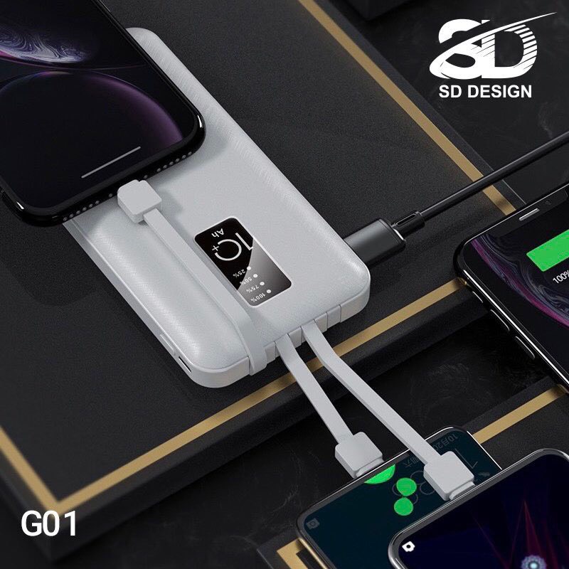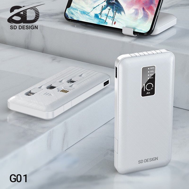 Sạc dự phòng chính hãng SD DESIGN G01 dung lượng 10.000 mAh có đầy đủ chân sạc cho iphone, samsung, xiaomi,...