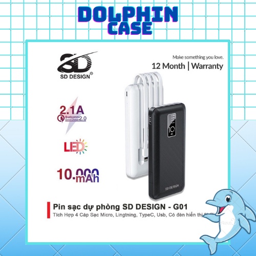 Sạc dự phòng chính hãng SD DESIGN G01 dung lượng 10.000 mAh có đầy đủ chân sạc cho iphone, samsung, xiaomi,...DOLPHIN CASE CAM KẾT
