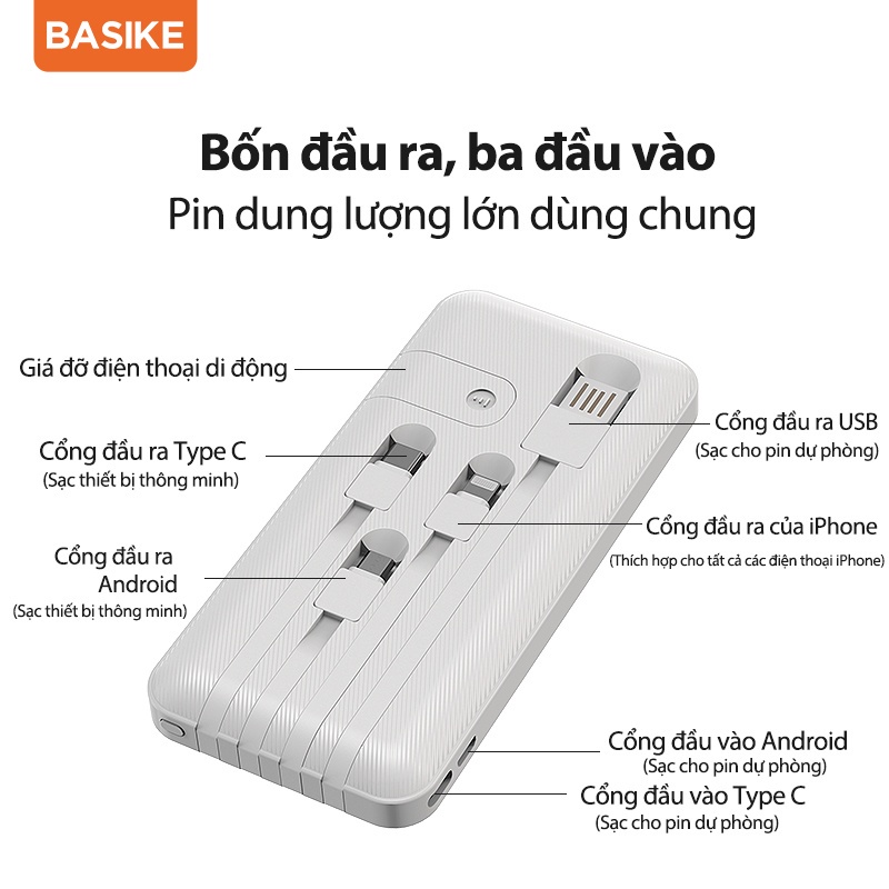 Sạc Dự Phòng Chính Hãng Sendem - Dung Lượng 10000mahTÊN SẢN PHẨM: Sạc dự phòng 10000mAh có 4 cáp sạc thích hợp cho tất cả các dòng điện thoại