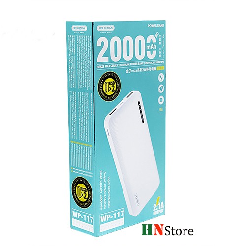 ✅ Tên sản phẩm: Pin dự phòng Remax WK WP-117 Herze 20000mAh 2 cổng USB