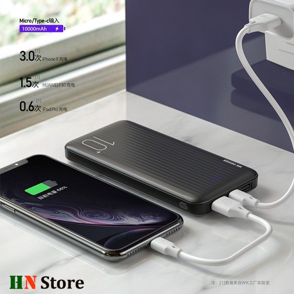 Sạc dự phòng [CHÍNH HÃNG] wk wp 129 dung lượng 10000 mAh sạc cùng lúc 2 thiết bị - Store HN