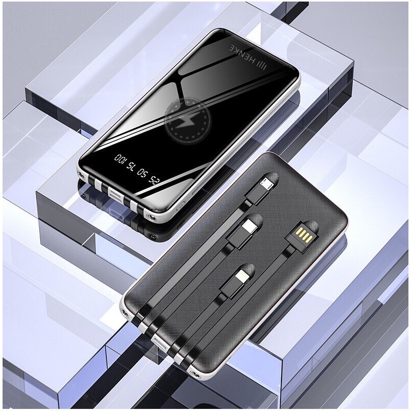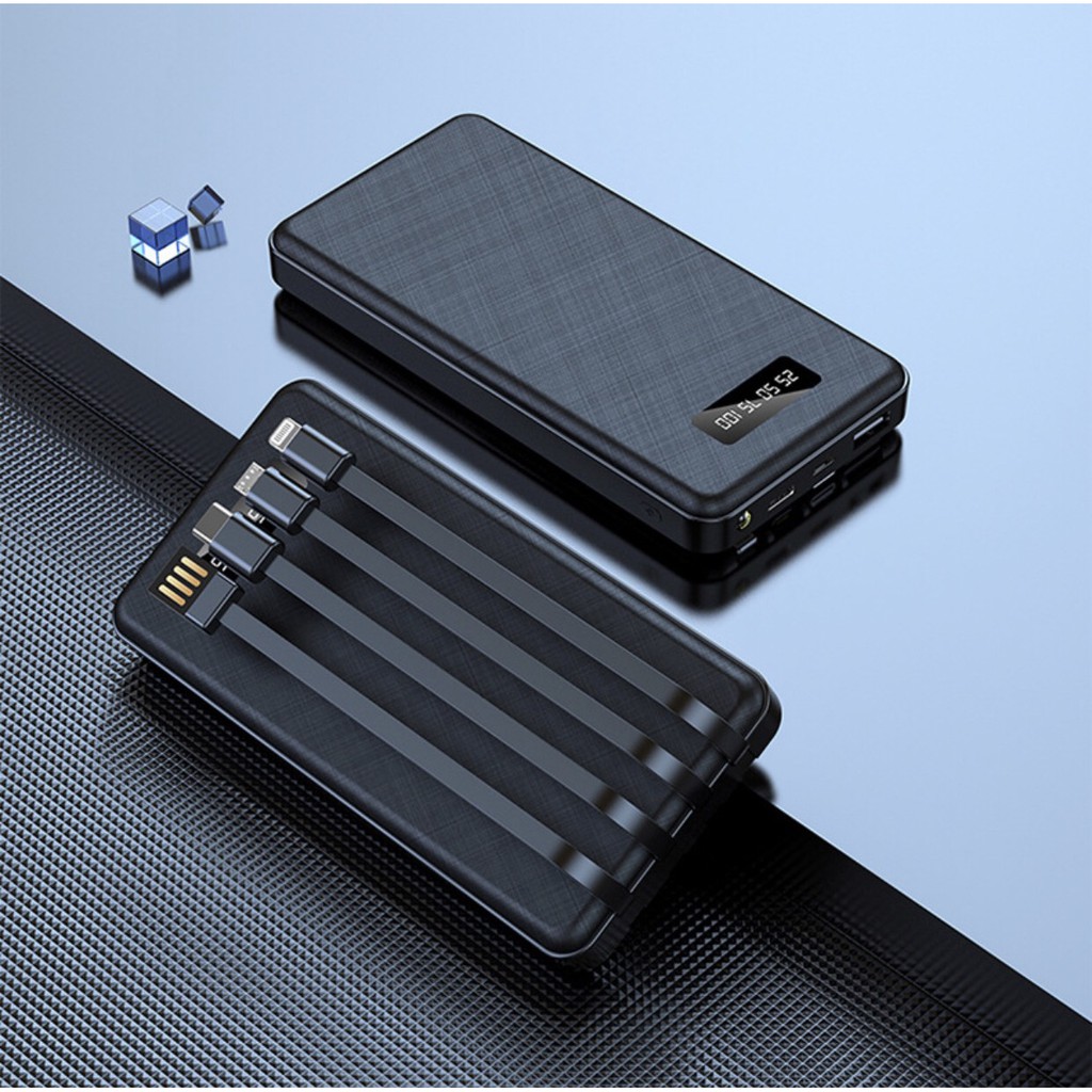 Sạc dự phòng đa năng kèm dây sạc, không cần phải mang theo dây sạc khi đi ra ngoài rất tiện lợi và năng động- Cổng ra : 1 Lightning(tích hợp dây) + 1 USB-TYPE C(tích hợp dây) + 1 MicroUSB(tích hợp dây) + USB ouput tích hợp sạc không dây sạc nhanh