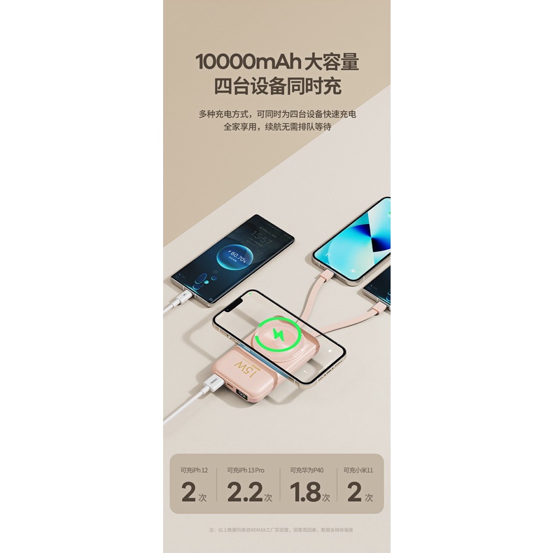 Remax RPP-26 được trang bị viên pin với dung lượng lên đến 10000mAh cho khả năng sạc thiết bị nhiều lần. Theo thử nghiệm từ nhà sản xuất, với cục pin sạc dự phòng 10000mAh này, người dùng có thể sạc 2.2 lần cho dòng Huawei mate30 Pro, 3.3 lần cho iPhone11 Pro, iPhone12 Pro 2.3 lần cho OPPO Reno3 Pro.
