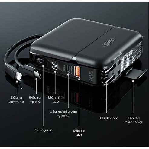 Giới thiệu Sạc Dự Phòng Đa Năng Remax RPP-20 - Hỗ Trợ Sạc Nhanh 18W - Tích Hợp 2 Cáp Sạc TypeC & Lightning - Dung Lượng 15000mAh