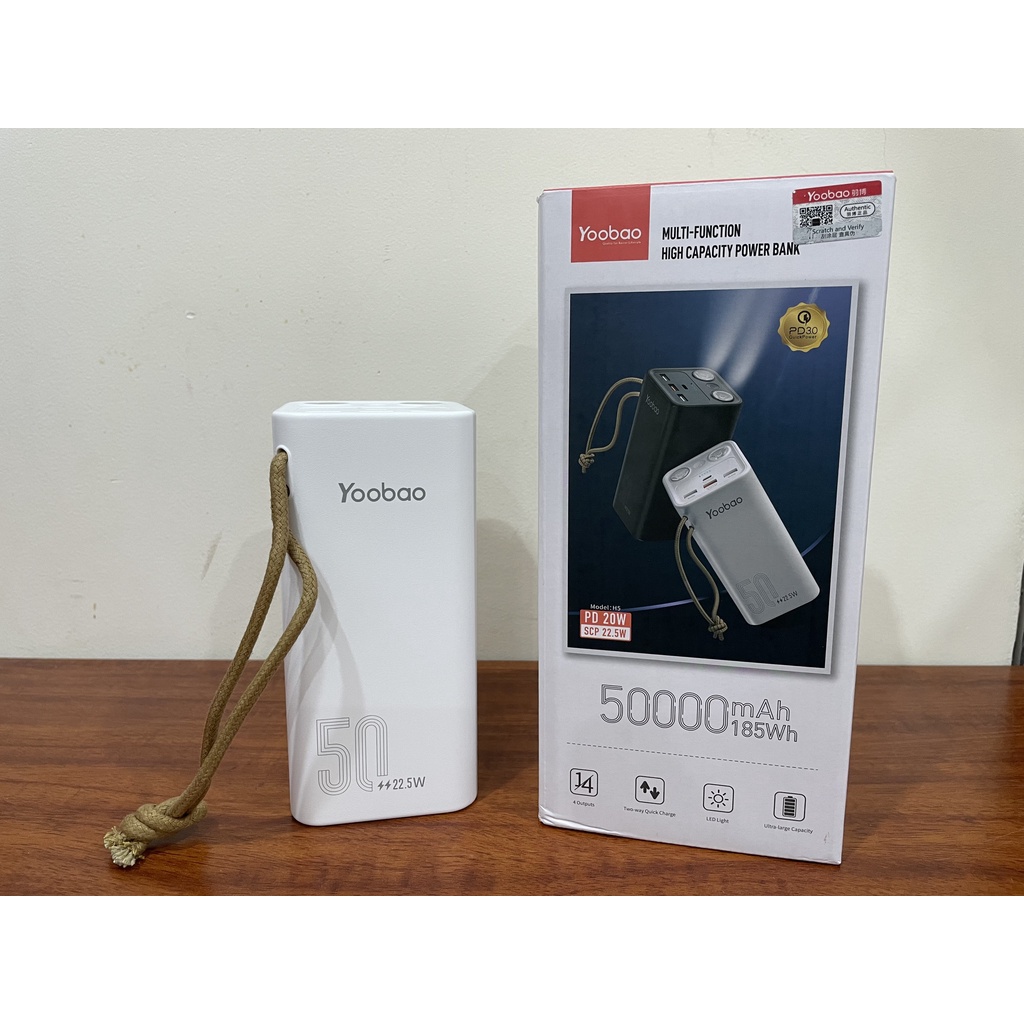Điện Thoại & Phụ Kiện > Phụ kiện > Sạc dự phòng & Pin > Sạc dự phòng || Sạc dự phòng dung lượng cao Yoobao H5 50000 mAh Sạc nhanh nhiều thiết bị kèm đèn pin siêu sángCòn hàng