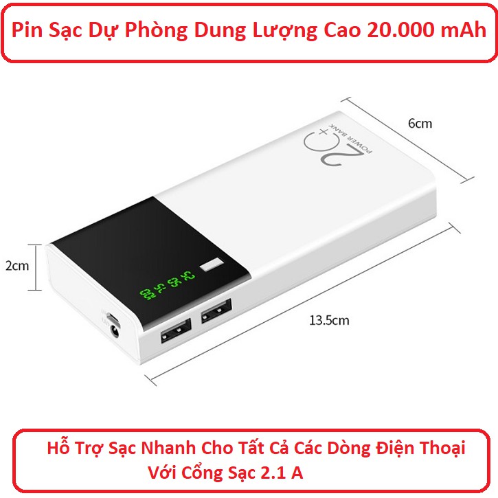 Điện Thoại & Phụ Kiện > Pin sạc dự phòng > >20000mAh || [Mã ELFLASH5 giảm 20K đơn 50K] Sạc Dự Phòng Dung Lượng 20000mAh Có Màn LEDCòn hàng