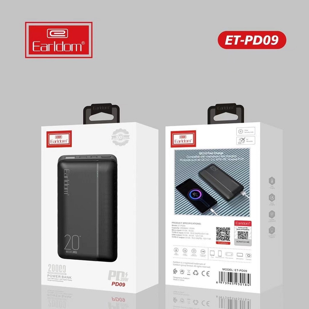 Sạc Dự Phòng Earldom 20.000 mAh Sạc Nhanh QC 3.0 PD – 09