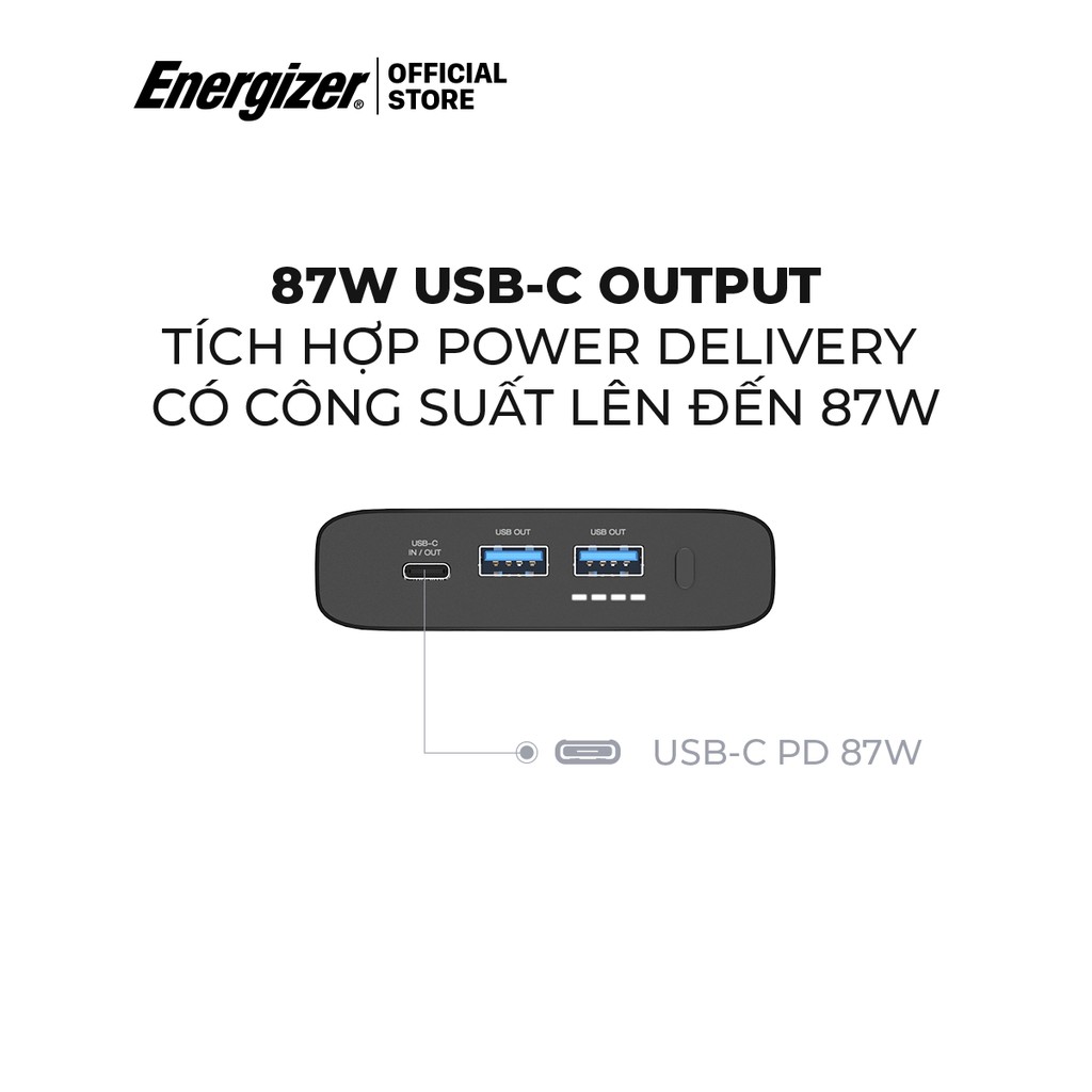 Sạc dự phòng Energizer 26,800mAh XP26800PD - tích hợp 3 cổng output tiện lợi, công suất 87W - Hàng chính hãng