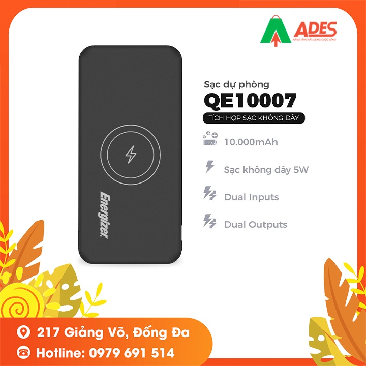 Điện Thoại & Phụ Kiện > Phụ kiện > Sạc dự phòng & Pin > Sạc dự phòng || Sạc dự phòng Energizer QE10007BK 10,000mAh - tích hợp sạc không dây chuẩn Qi, thiết kế nhỏ gọn tiện lợiCòn hàng