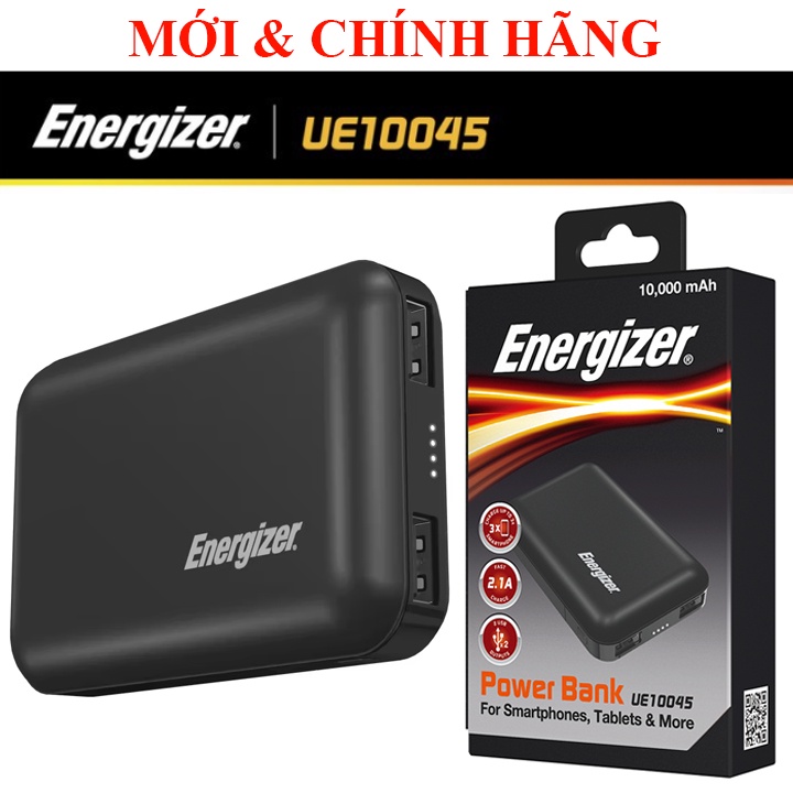 Điện Thoại & Phụ Kiện > Phụ kiện > Sạc dự phòng & Pin > Sạc dự phòng || Sạc dự phòng Energizer 10000mAh UE10045 - 2 cổng output, nhỏ gọn tiện lợiCòn hàng