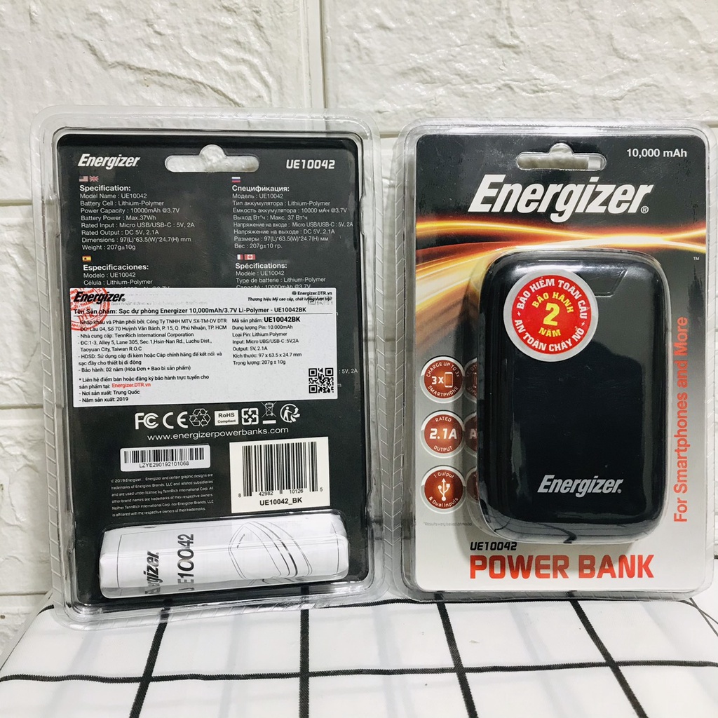 Sạc dự phòng Energizer 10,000mAh /3.7V Li-Polymer - UE10042 [HÀNG CHÍNH HÃNG]Pin dung lượng lên đến 10000mAh nhưng thiết kế siêu gọn nhẹ, chỉ 200gr - nằm vỏn vẹn trong lòng bàn tay.