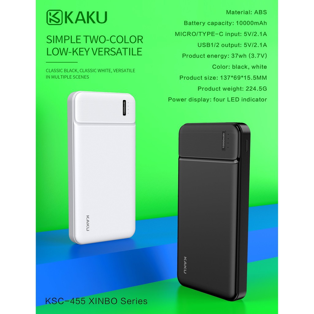 Sạc dự phòng chính hãng KAKU KSC- 455Dung lượng pin : 10.000mAh