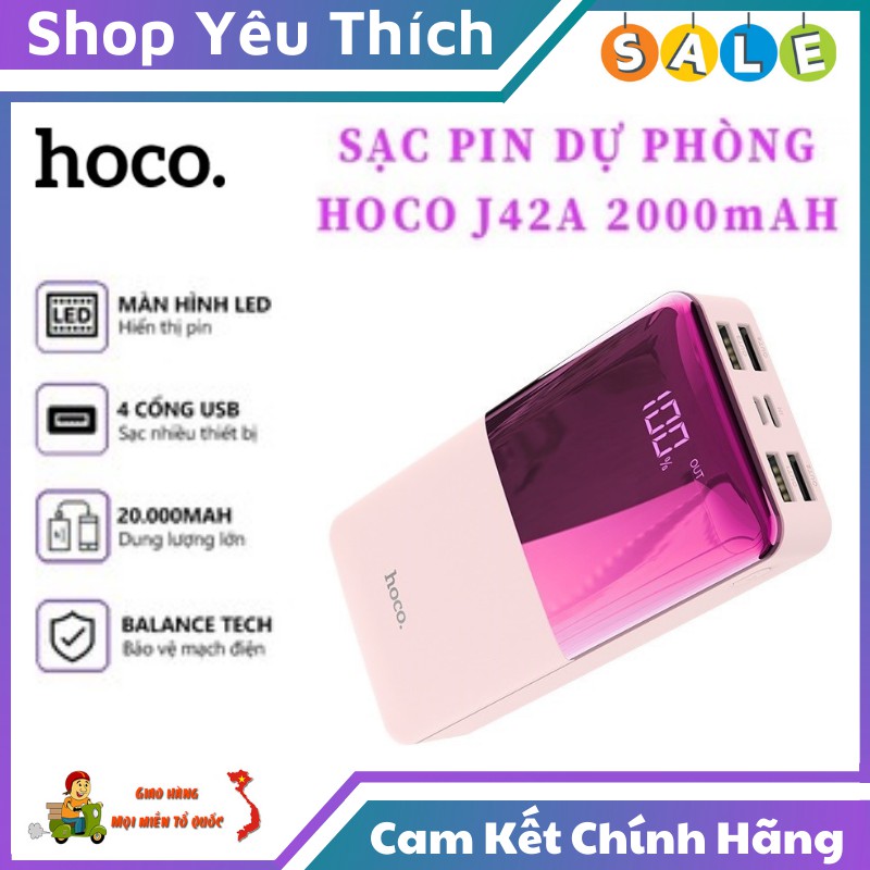 Sạc Dự Phòng ⭐FREE SHIP⭐ Sạc Dự Phòng Hoco J42A 20000mAh Màn Hình Kỹ Thuật Số LED Hiển Thị Mức Năng Lượng Pin A+