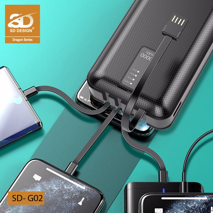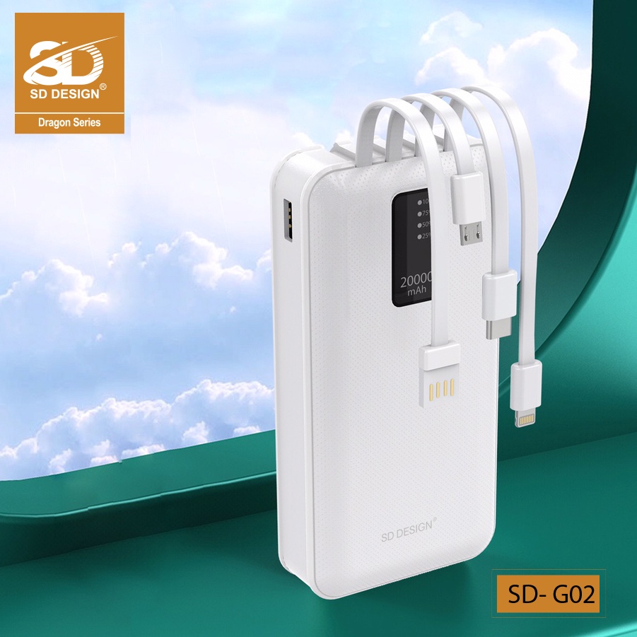 Sạc dự phòng G02 4 cổng chính hãng SD DESIGN dung lượng 20.000 mAh với đầy đủ chân sạc cho iphone, samsung, xiaom