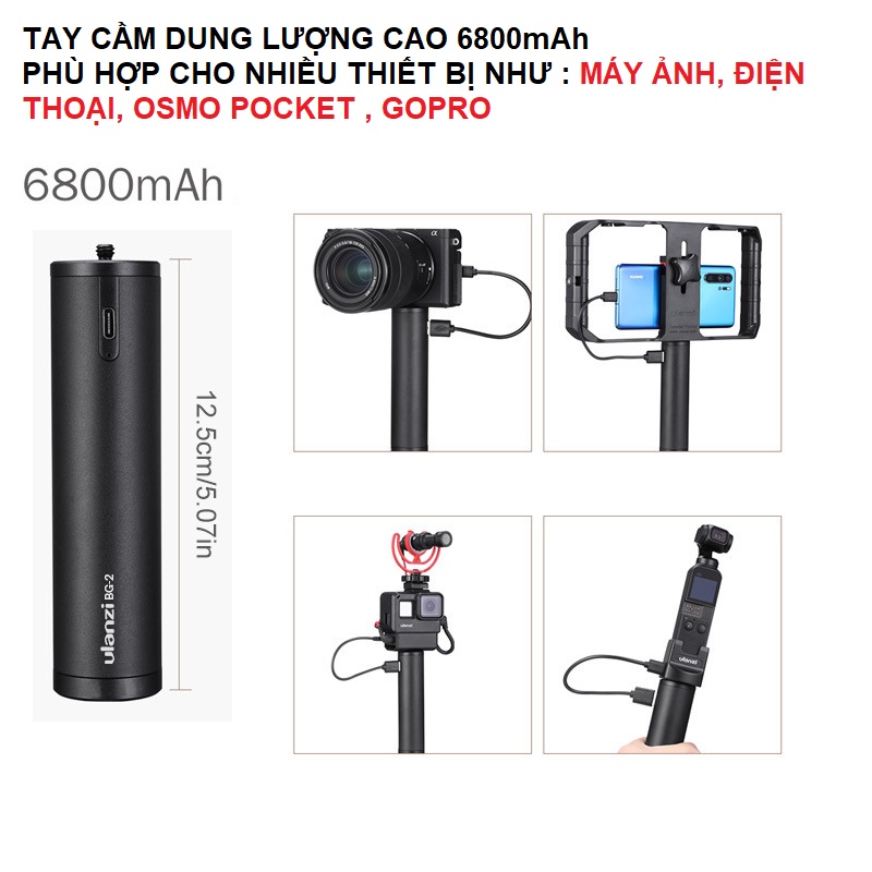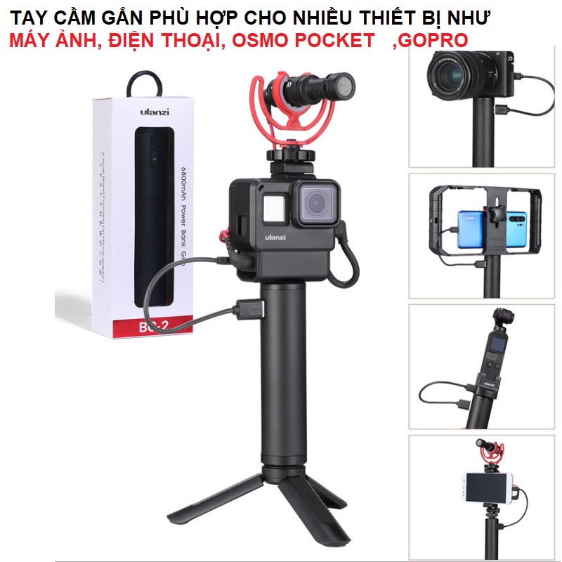 - Tay cầm kiêm sạc dự phòng Ulanzi BG-2 dung lượng cao 6800mah cho Gopro action cam điện thoại máy ảnh hàng mới 100%