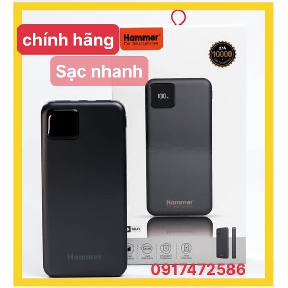 Điện Thoại & Phụ Kiện > Phụ kiện > Sạc dự phòng & Pin > Sạc dự phòng || Sạc Dự Phòng Hammer (H09) Li-Ion - Polymer 10.000mAh, Sạc nhanh QC 3.0, LCD - Hàng Chính HãngCòn hàng