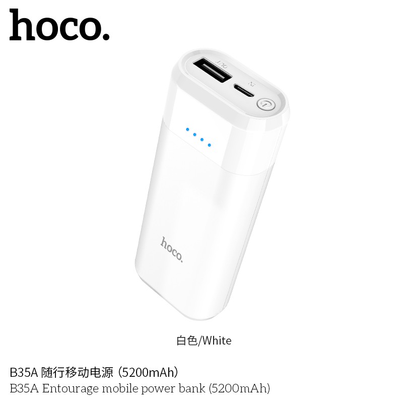 Sạc dự phòng Hoco B35A 5200mAh Nhỏ Gọn trong lòng bàn tayĐầu vào: Micro-USB DC5V / 1.0A.