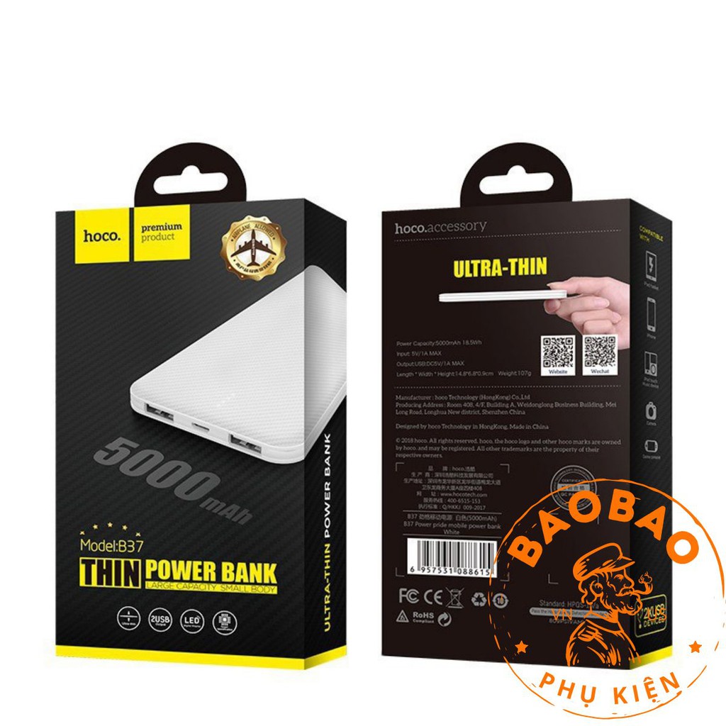 Sạc Dự Phòng Hoco B37 - Dung lượng 5.000 mAh (Hàng Chính Hãng) - Bảo hành toàn quốc