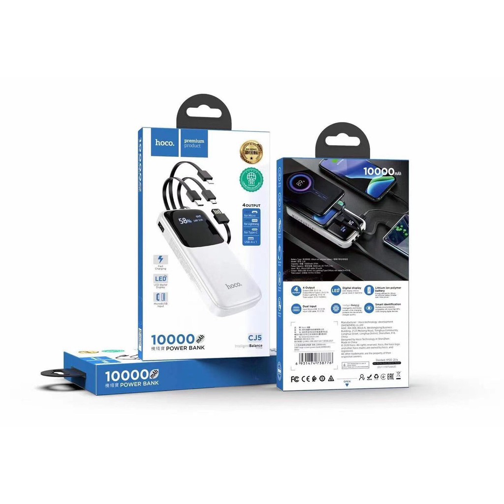 Giới thiệu Sạc dự phòng hoco chính hãng DB07 10000mah tích hợp 4 dây sạc