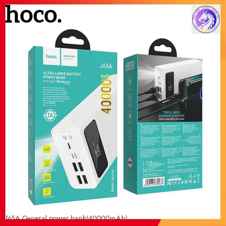 Giới thiệu Sạc Dự Phòng Hoco DB119 / Hoco J65A Dung Lượng 40000 mAh Có Đèn Pin - Màn Hình Led - Hàng Chính Hãng