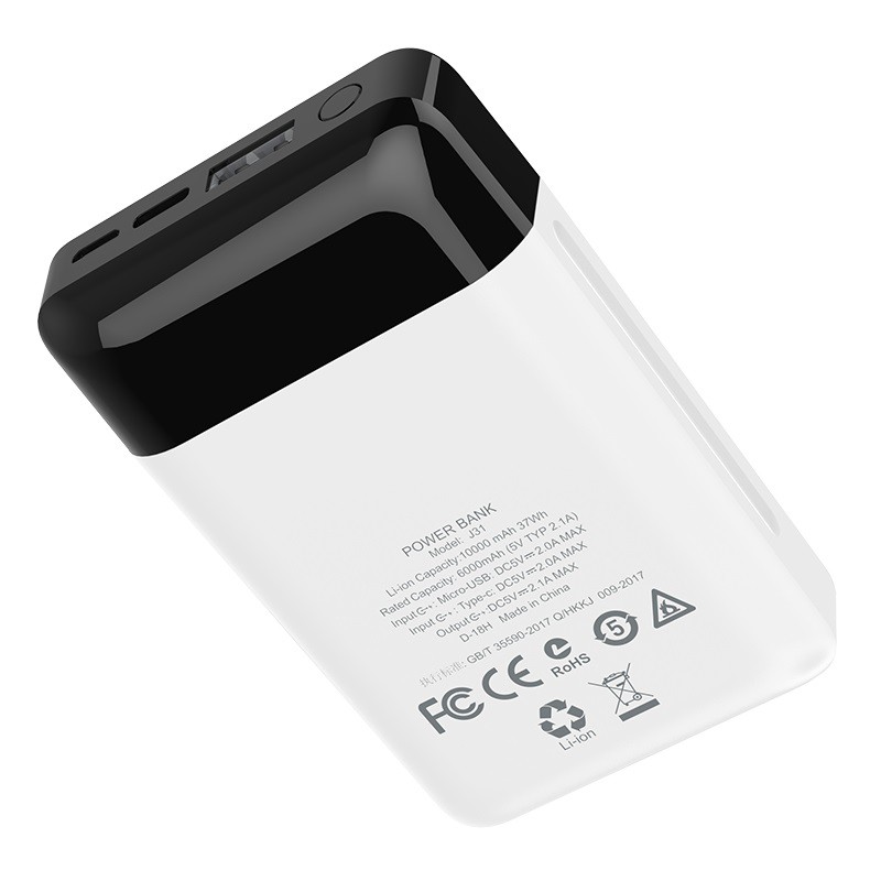 J31 Power niềm tin ngân hàng di động 10000mAh với màn hình LED kỹ thuật số đầu ra Micro-USB Type-C và USB 2.1A cho mức năng lượng trong thời gian thực