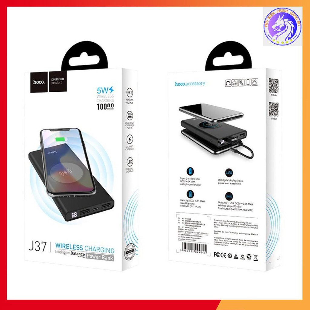 Giới thiệu Sạc Dự Phòng Hoco J37 Kiêm Sạc Không Dây- 2 Cổng USB Hỗ Trợ Sạc Nhanh10000MAH Chuẩn QI - BH 12 Tháng Chính Hãng
