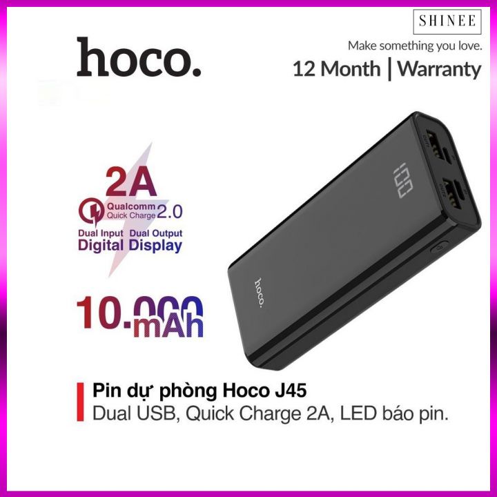 KHOSIPHUKIENTPHCM xin chào quý khách - Chúc quý khách có trải nghiệm mua sắm tuyệt vờiPin sạc dự phòng Hoco J45 đèn LED báo sạc dung lượng 10000mAh hỗ trợ 2 cổng sạc chất liệu ABS + PC chống cháy