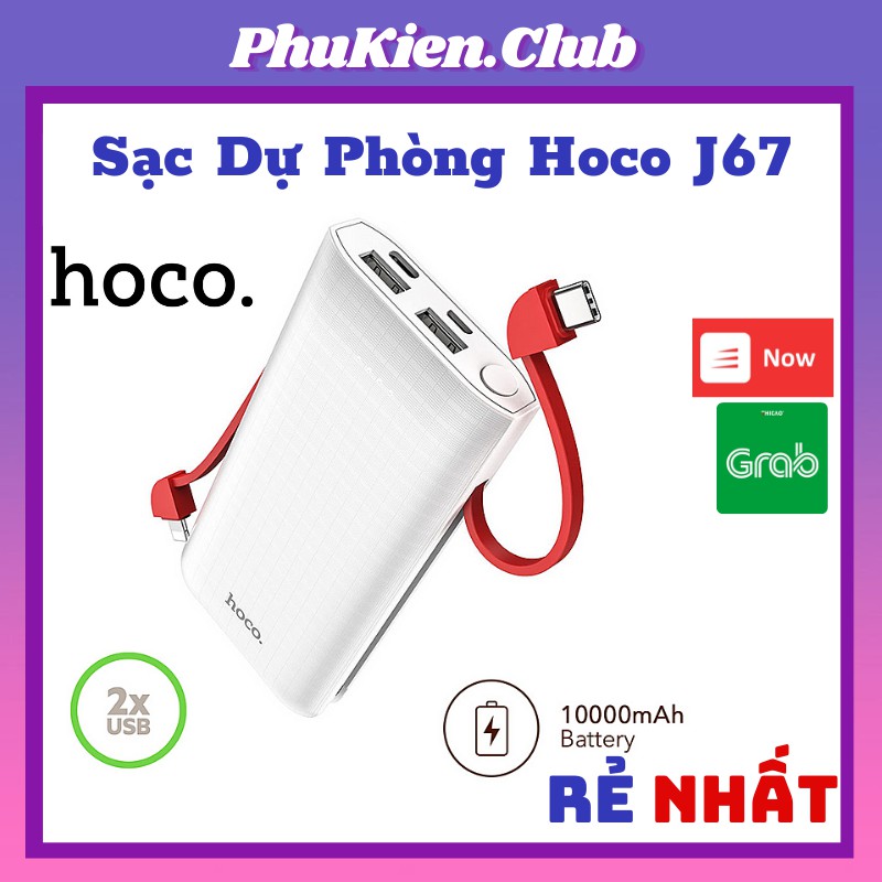 Sạc Dự Phòng Hoco J67 ✔ 10.000mAh ✔ Sạc nhiều Thiết Bị Cùng Lúc - Kèm 2 Cáp type-c và Linghtning