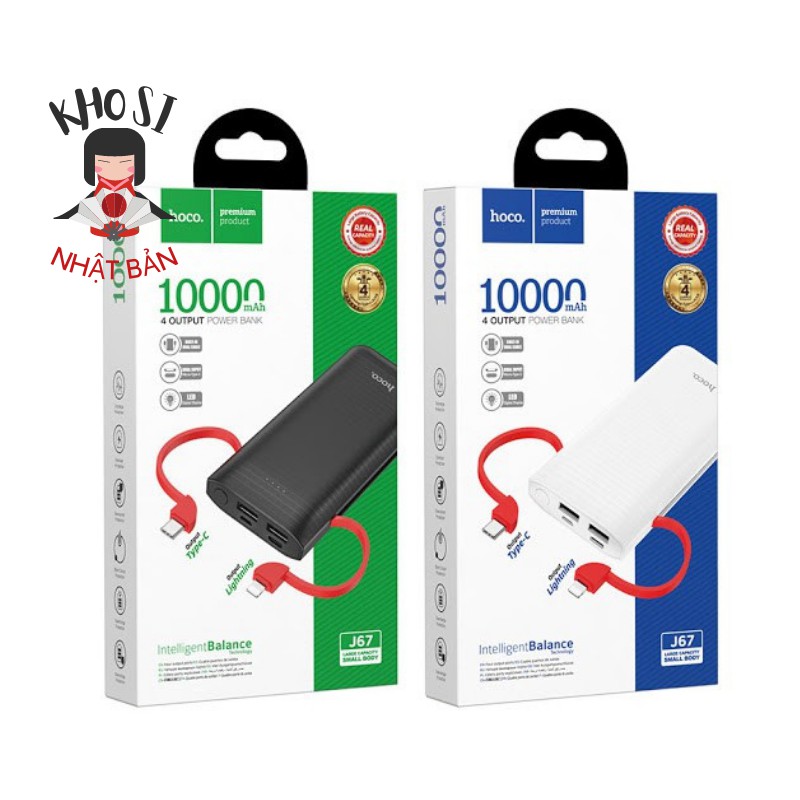 Sạc Dự Phòng Hoco J67 ✔ 10.000mAh ✔ Sạc nhiều Thiết Bị Cùng Lúc - Kèm 2 Cáp type-c và Linghtning