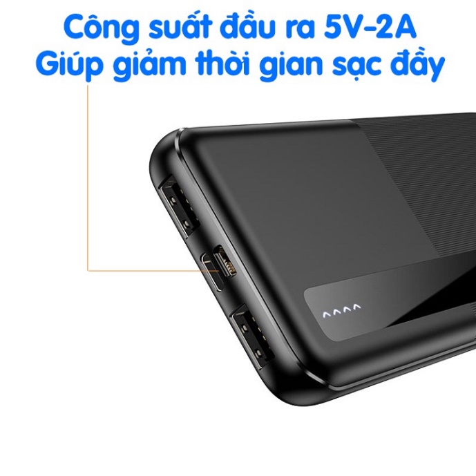 Sạc dự phòng HOCO J75 10000mAh, đầu ra 2 cồng USB nhanh , Có đèn Led báo dung lượng pin, Taiyoshop5