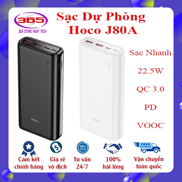 👉 Sạc dự phòng Hoco J80ASạc dự phòng Hoco J80A là 1 sản phẩm mới của Hoco năm 2021 chiếc sạc dự phòng này được trang bị đầy đủ các công nghệ sạc nhanh như QC, PD, VOOC, DASH v.v... nên tương thích với hầu hết các dòng điện thoại thông minh hiện đại bây giờ, các loại điện thoại thông minh trên thị trường như Iphone X 11 12 13, Samsung Galaxy S21 thì chỉ nhận tối đa là 21W mà chiếc Sạc dự phòng Hoco J80A hỗ trợ công suất sạc nhanh lên tới 22,5W nên các bạn hoàn toàn yên tâm là Sạc dự phòng Hoco J80A sẽ tương thích 100% với điện thoại bạn đang dùng, 1 điểm mạnh của Sạc dự phòng Hoco J80A là đầu vào của nó lên tới 18W chứ ko phải 5W hay 10W như các loại sạc dự phòng đời cũ nên thời gian sạc đầy chiếc Sạc dự phòng Hoco J80A sẽ nhanh gấp đôi so với các loại đời cũ, về thiết kế thì Sạc dự phòng Hoco J80A có đèn Led hiển thị % pin, chất liệu thì bằng nhựa ABS chống cháy, trái tim của Sạc dự phòng Hoco J80A là các viên pin Lithium Polymer hiện đại, kích thước của Sạc dự phòng Hoco J80A là 149 * 70 * 28mm và trọng lượng là 247g.