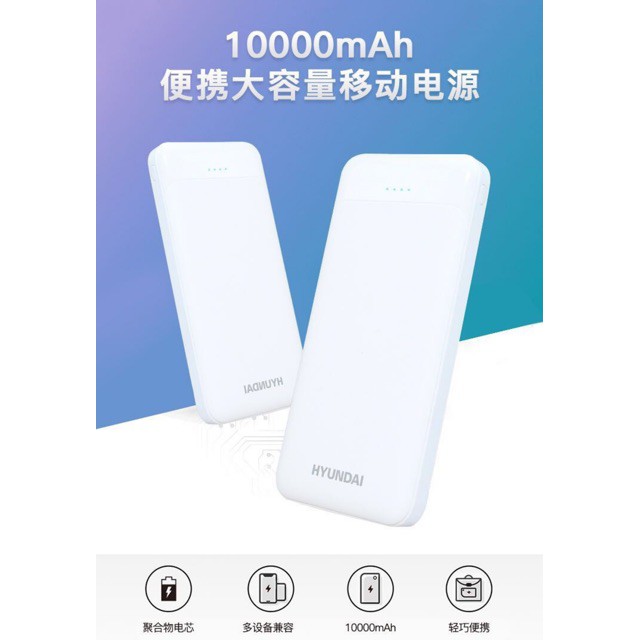 ✨✨✨✨✨ SẠC DỰ PHÒNG HYUNDAI PB01 10000 MaHtích hợp 1 cổng typeC và 2 cổng usb sạc nhanh