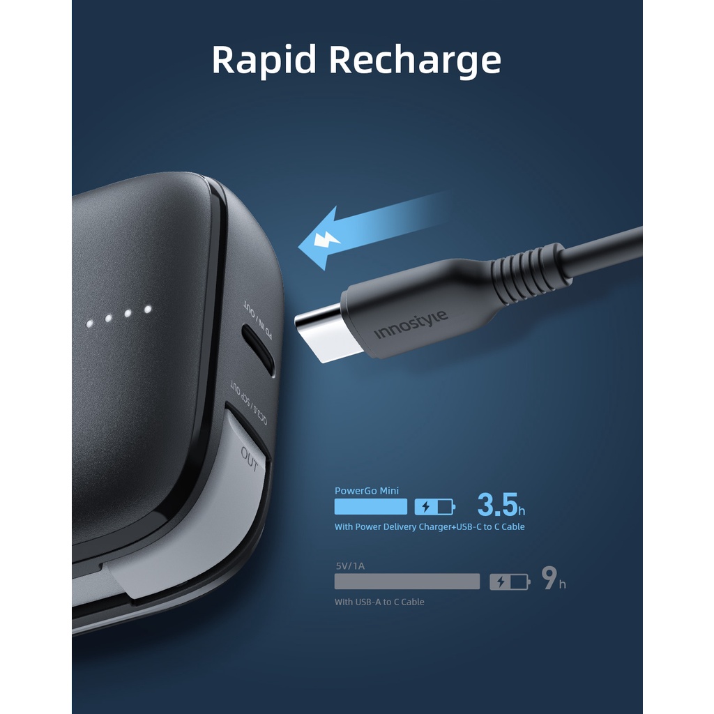 Điện Thoại & Phụ Kiện > Phụ kiện > Sạc dự phòng & Pin > Sạc dự phòng || Sạc Dự Phòng Innostyle 22.5W 10000mAh Kèm Cáp USB-C POWERGO MINI - IP22PDBLKCòn hàng