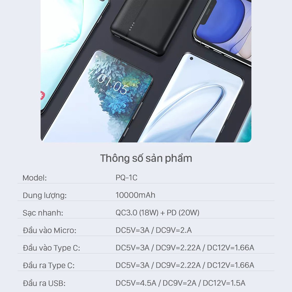 Sạc dự phòng JUYUPU 1C 10000mAh sạc nhanh PD QC3.0 chính hãng cho iPhone Samsung OPPO HUAWEI XIAOMI cục sạc dự phòng