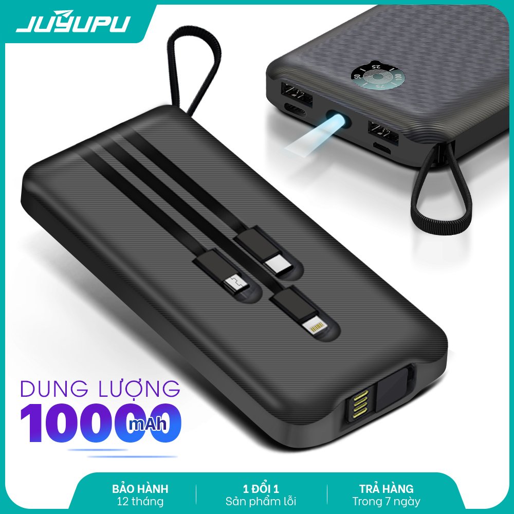 Sạc dự phòng JUYUPU PG101 10000mAh kèm 3 dây sạc chính hãng cho iPhone Samsung OPPO VIVO HUAWEI XIAOMI pin sạc dự phòng