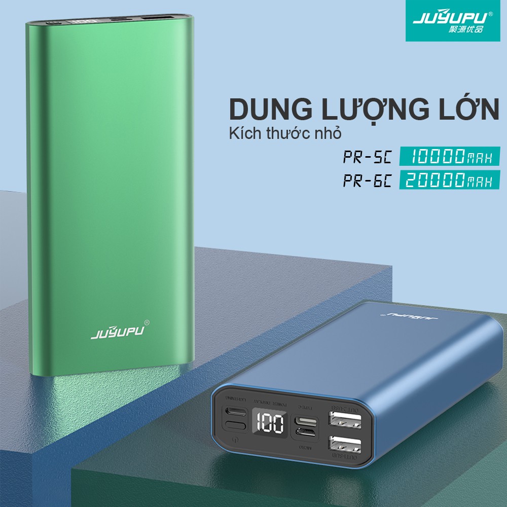 Sạc dự phòng JUYUPU PR-6C 20000mAh màn hình LED chính hãng cho iPhone Samsung OPPO VIVO HUAWEI XIAOMI cục sạc dự phòng