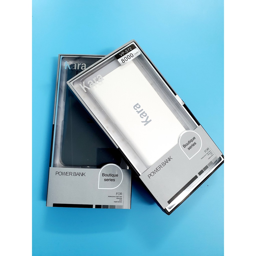 Sạc Kara 6000mah sản xuất thành khối đúc liền nhự meka chắc chắn, hỗ trợ 2 cổng USB sạc cùng lúc 2 máy.