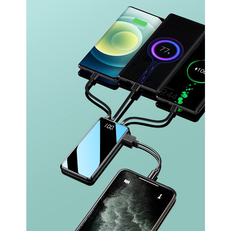 Sạc Dự Phòng Kèm Cáp Sạc Nhanh 20000mAh Nhỏ Gọn, Sạc Nhanh Cùng Lúc Nhiều Thiết Bị