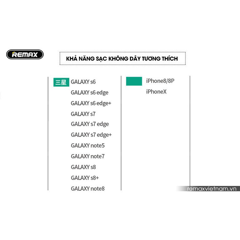 Remax PPP-33 có độ tương thích rộng khi thích hợp với tất cả các smartphone có chuẩn Qi như Galaxy 7, 7s, Iphone 8, 8s, X… Nếu thiết bị của bạn không có, bạn hoàn toàn có thể cài đặt bộ thu Qi bên ngoài để sạc.