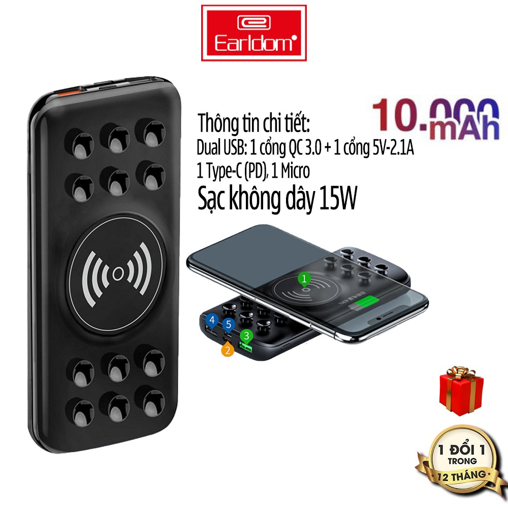 Điện Thoại & Phụ Kiện > Pin sạc dự phòng > 10000 - 20000mAh || SẠC DỰ PHÒNG KÈM SẠC KHÔNG DÂY 10.000 MAH EARLDOM PD-01Còn hàng