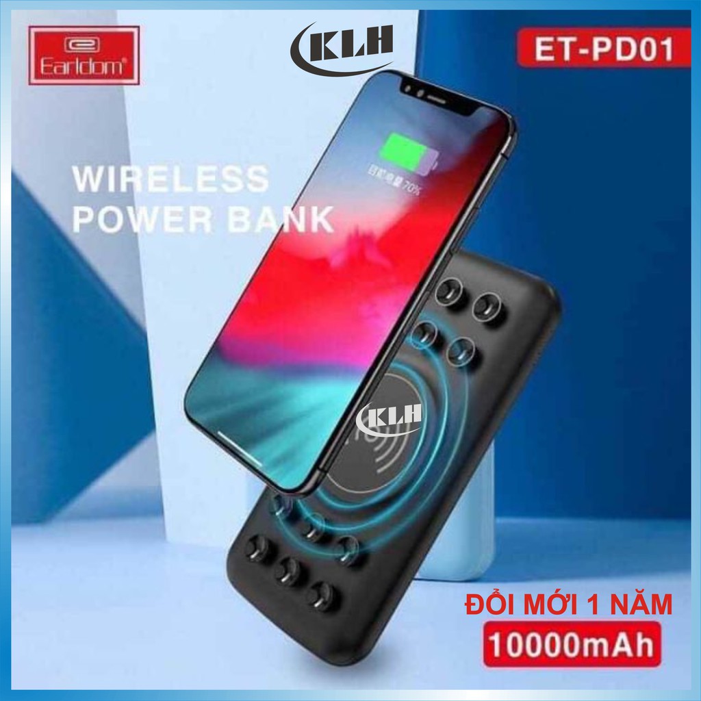 Điện Thoại & Phụ Kiện > Pin sạc dự phòng > 10000 - 20000mAh || Sạc dự phòng không dây 10.000mAh. pin tích điện dung lượng cao 15W hỗ trợ sạc nhanh Quick Charge 3.0 KLH Earldom PD01Còn hàng