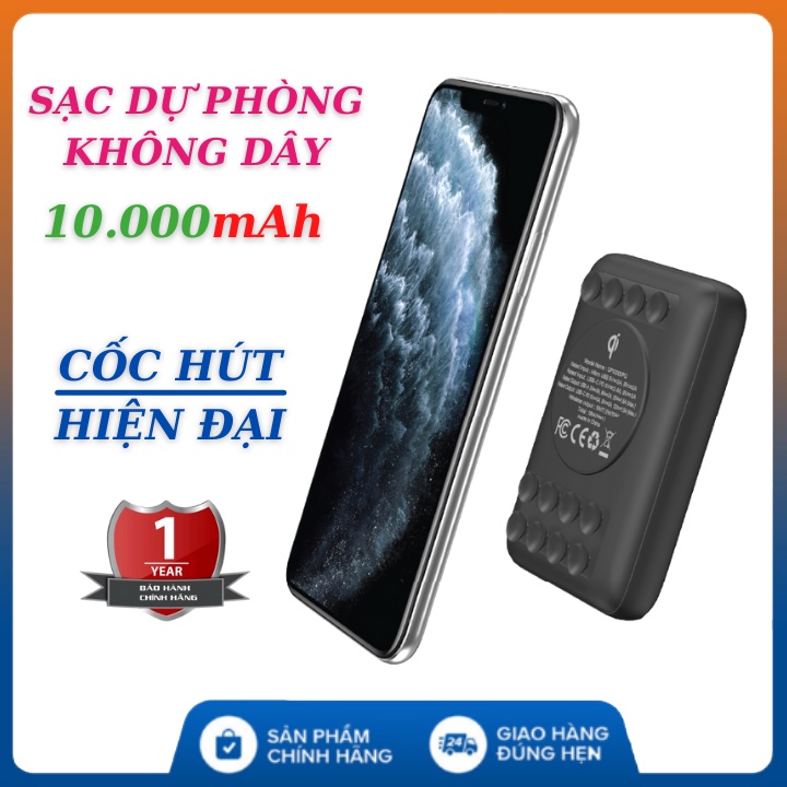 Sạc dự phòng không dây 10000 mah 💥 FREESHIP 💥 Tích Hợp Sạc Nhanh - Cốc hút chắc chắn (Suction Cup) , bảo hành 12 thángTHÔNG SỐ CHI TIẾT Pin Sạc dự phòng không dây 10000 mah 💥 FREESHIP 💥 Cốc hút chắc chắn (Suction Cup) – Đa chuẩn sạc nhanh , bảo hành 1năm