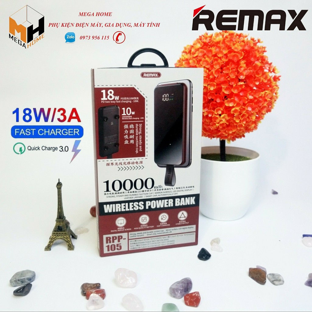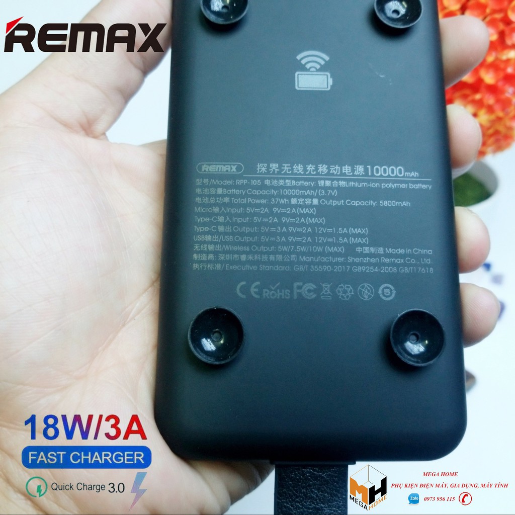 Sạc dự phòng không dây 10000mAh REMAX RPP-105 hỗ trợ sạc nhanh 18W - Pin sạc dự phòng REMAX chính hãng