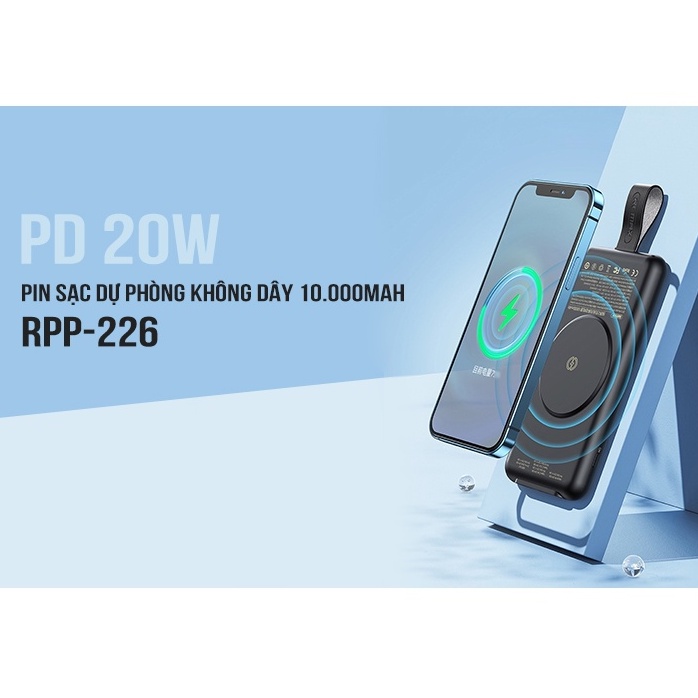 Sạc dự phòng không dây 10000mah cho ip samsung PD 22W ICYBERNET REMAX RP226 Tặng cáp sạc TypeC RC138a