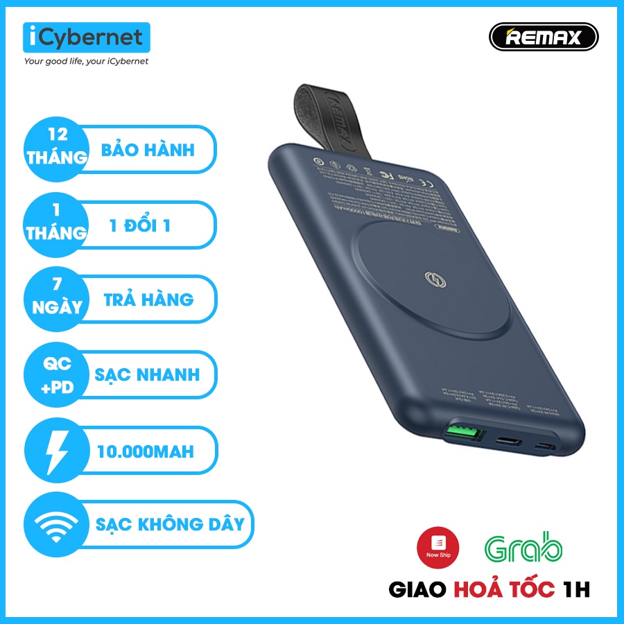 Điện Thoại & Phụ Kiện > Phụ kiện > Sạc dự phòng & Pin > Sạc dự phòng || Sạc dự phòng không dây 10000mah cho ip samsung PD 22W ICYBERNET REMAX RP226Còn hàng