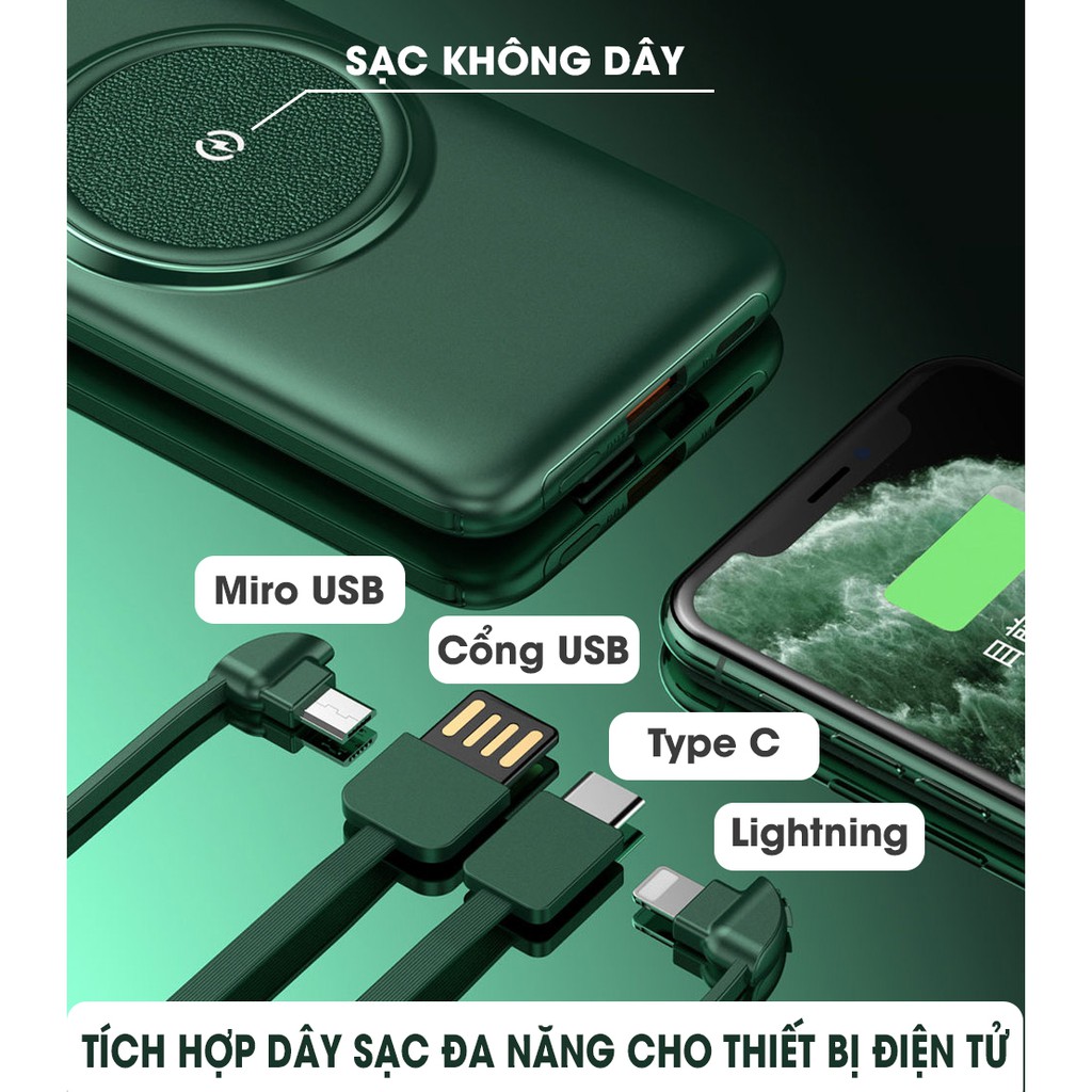 Sạc Dự Phòng Không Dây 20.000mAh Tích Hợp Dây Sạc Chính Hãng Cyke