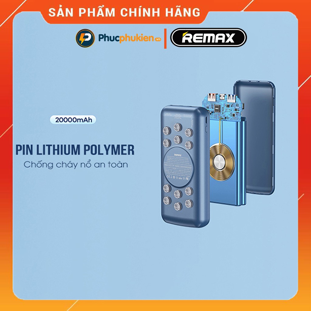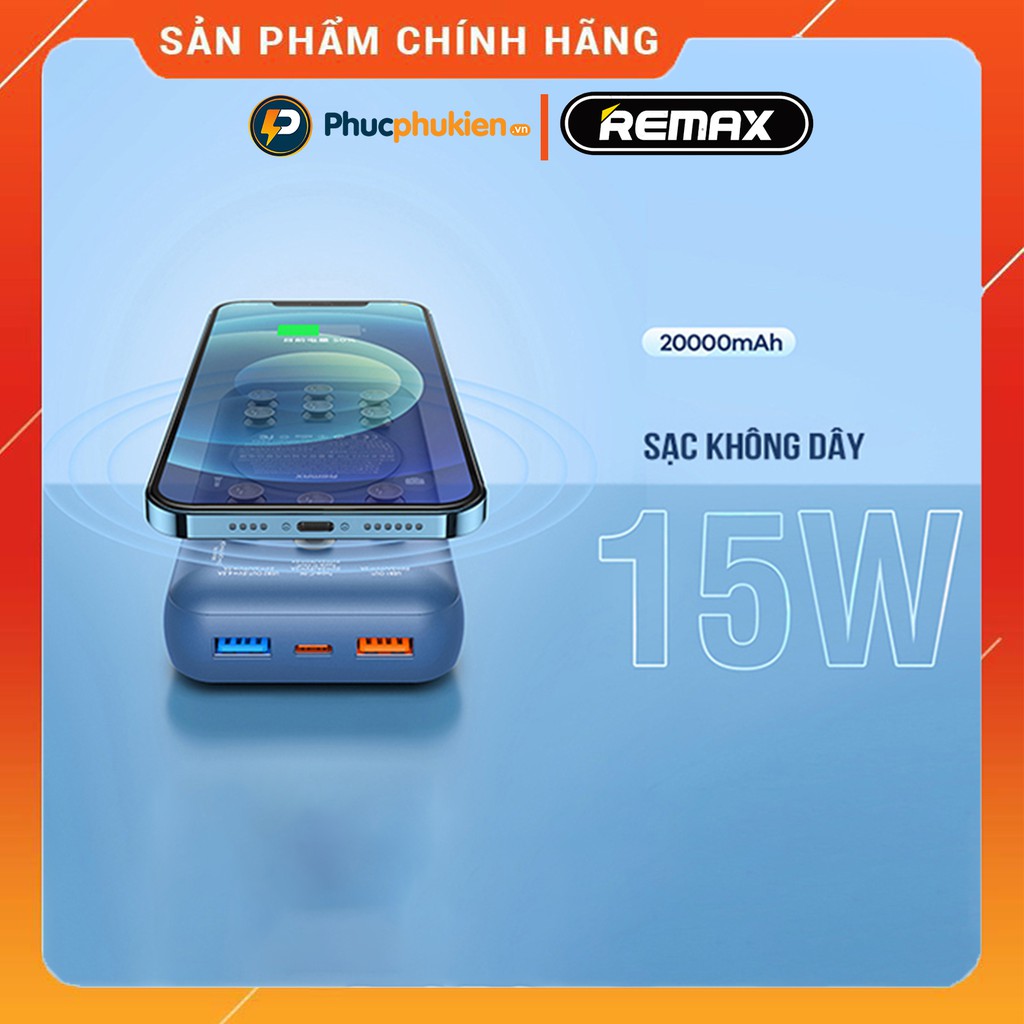 Sạc dự phòng không dây 20000mah chính hãng Remax RPP 207 sạc không dây 15w và 3 cổng sạc nhanh iPhone 20w Phúc Phụ Kiện